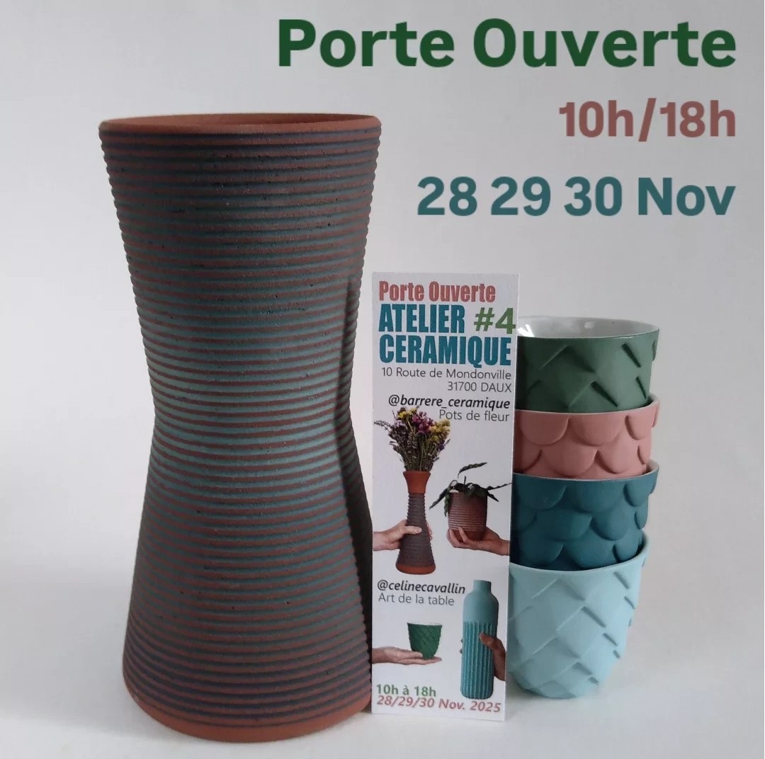 Venez rencontrer Céline Cavallin et Emmanuel Barrère lors des portes ouvertes de leur atelier céramique : vous découvrirez leurs magnifiques créations et ils se feront un plaisr de vous expliquer leurs techniques de fabrication !
